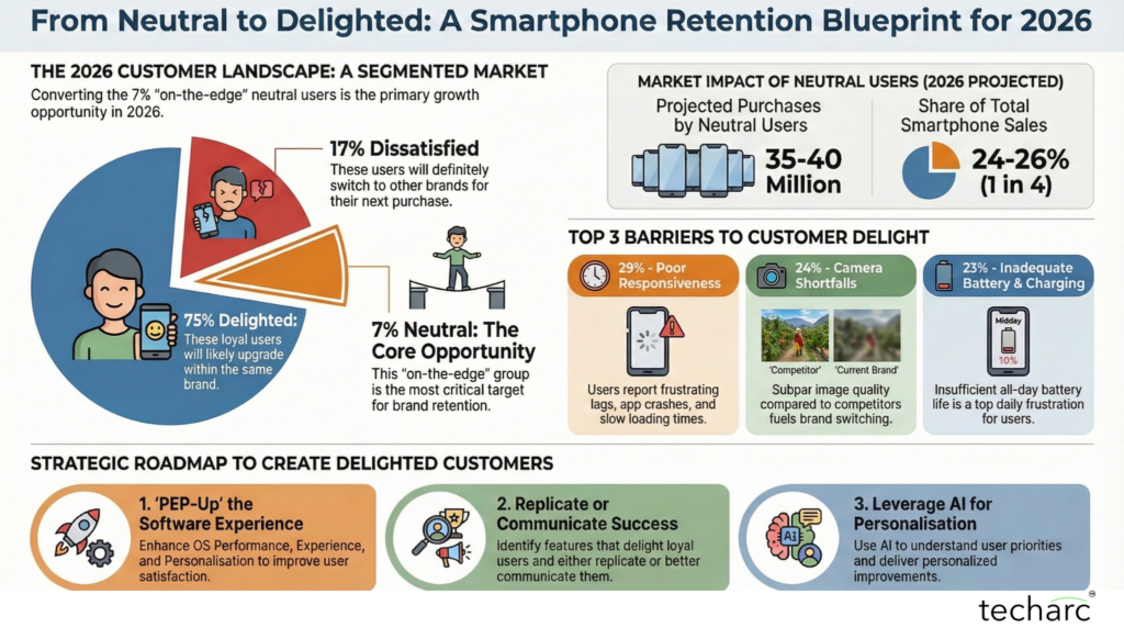 New customer acquisition is always a challenge. In 2026, acquiring new customers is going to be even more challenging for smartphone OEMs for the reasons outlined in this InsightsPro. In a year, when cost optimisation will be a key focus to absorb the fluctuating situation in the supply chain of key components like storage, memory, and chipsets, arresting inter-switch of users will be paramount.  This can only be achieved by achieving an ideal state where every customer is delighted. In a realistic market condition, this is impossible. However, addressing the gaps of the on-the-edge cohort, smartphone OEMs can widen the base of delighted users and achieve business as well as financial goals in conditions that are likely to prevail in 2026 and remain so for a couple more years.